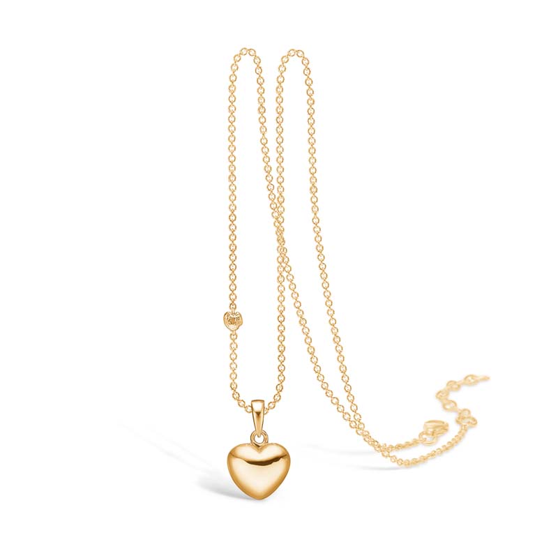 BLOSSOM blank forgyldt hjerte vedhæng på kæde, mellem størrelse