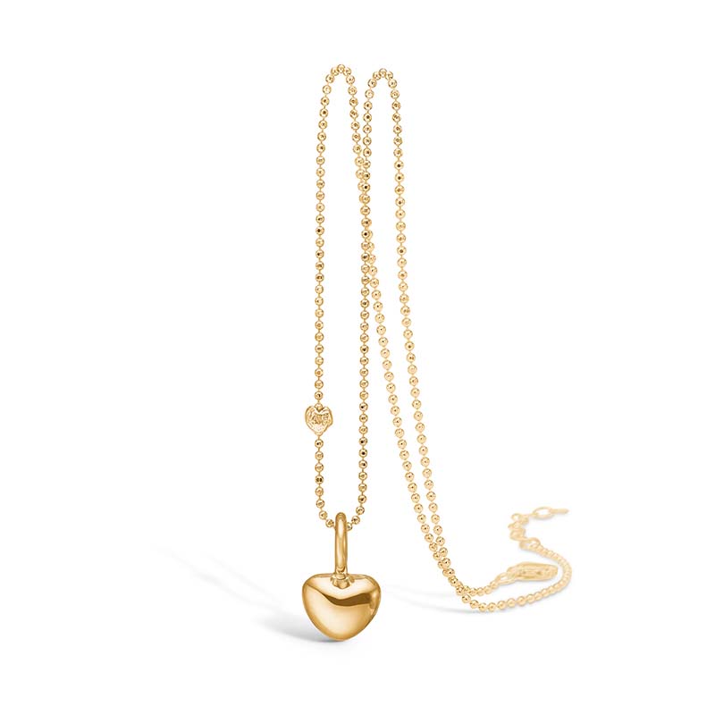 Det betyder, at du modtager Blossom blankt forgyldt hjerte vedhæng, halskæde 42+3 cm uden problemer og før, du ved det.