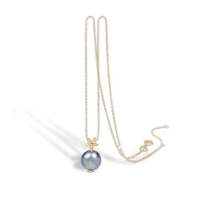 Blossom Copenhagen Forrest vedhæng i 9 kt guld med sort ferskvandsperle og forgyldt kæde