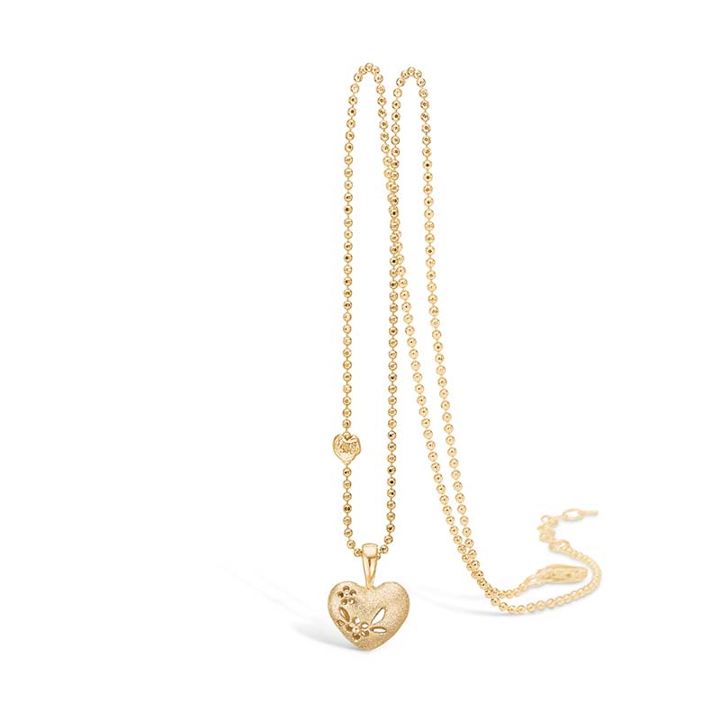 Blossom forgyldt hjerte vedhæng mat med blomster, halskæde 42+3 cm