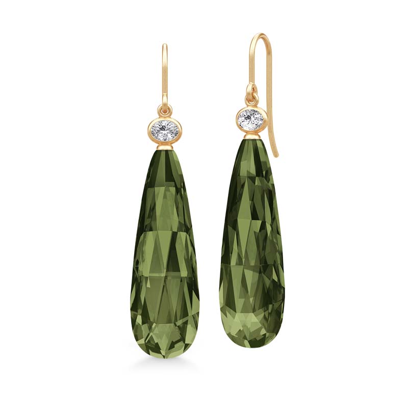 Julie Sandlau Ofelia Drop øreringe i forgyldt med olivengrøn krystal