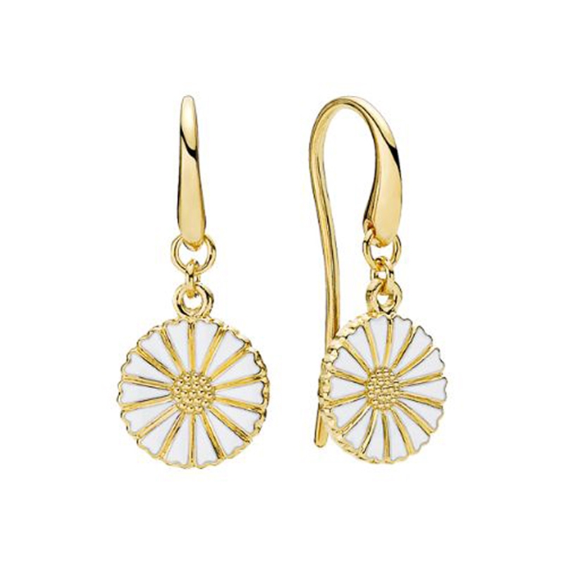 Lund Copenhagen Marguerit ørehænger i forgyldt med hvid emalje