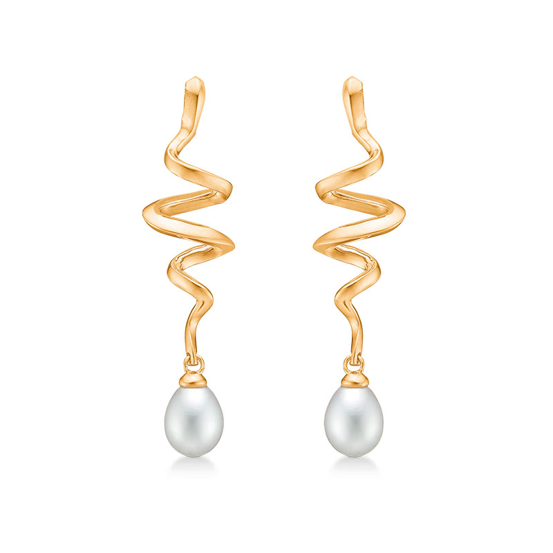 Mads Z Swirl Pearl øreringe i 14 kt guld