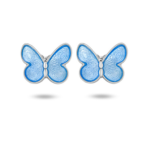 Pia & Per børne sommerfugleørestikker i sølv, lys blå