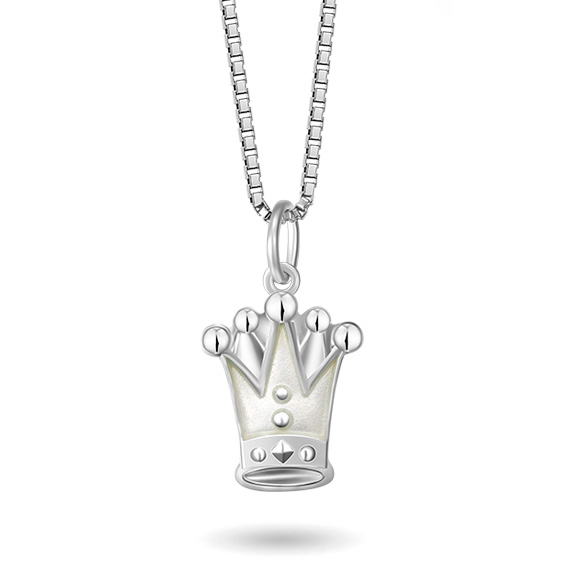 Pia & Per børnehalskæde med prinsessekrone i sølv, hvid