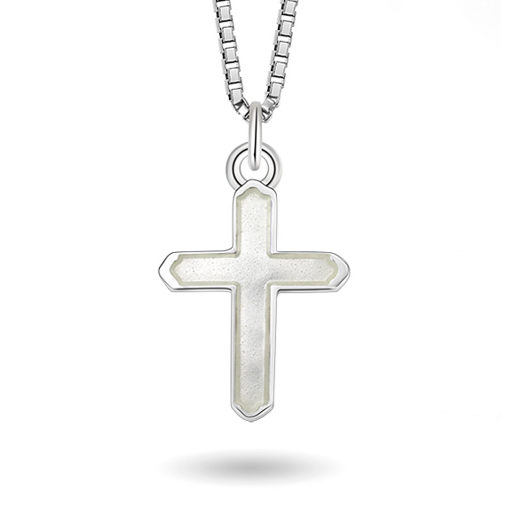 Pia & Per børnehalskæde med stavkors i sølv, hvid