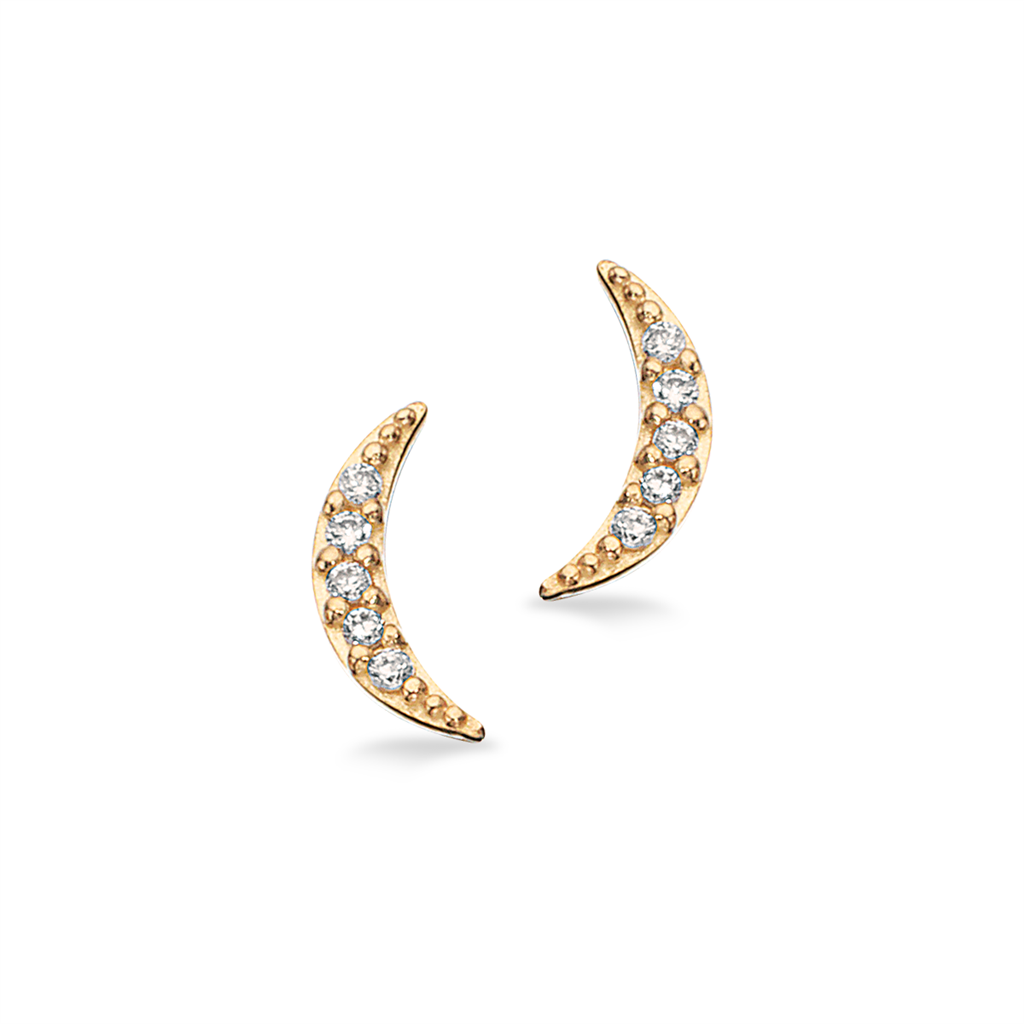 Scrouples – 8 karat måne formet guld øreringe med sten – 119223