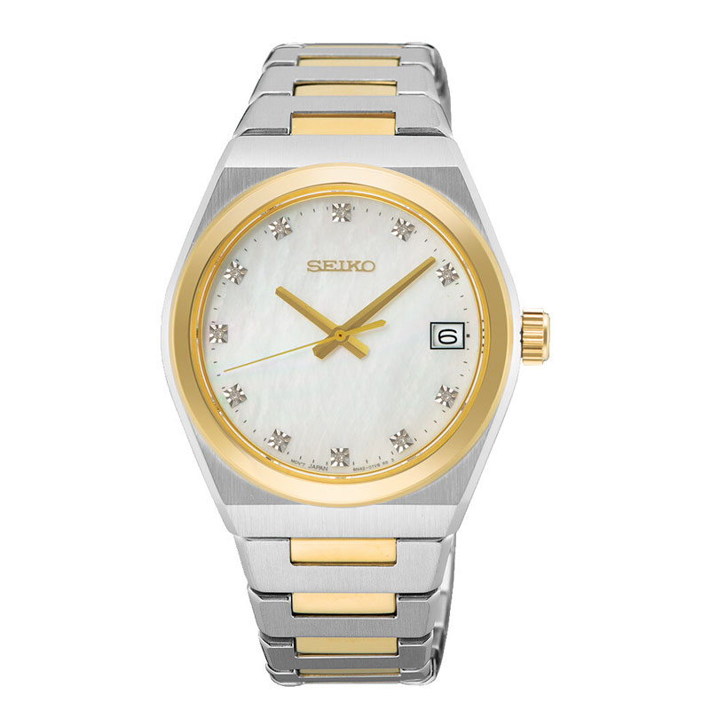 Seiko Conceptual Series dameur i guldfarvet stål med perlemorrskive med diamanter – Ø34