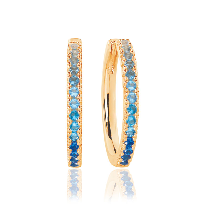 Sif Jakobs Ellera Grande øreringe i forgyldt med blå og klare zirkoner