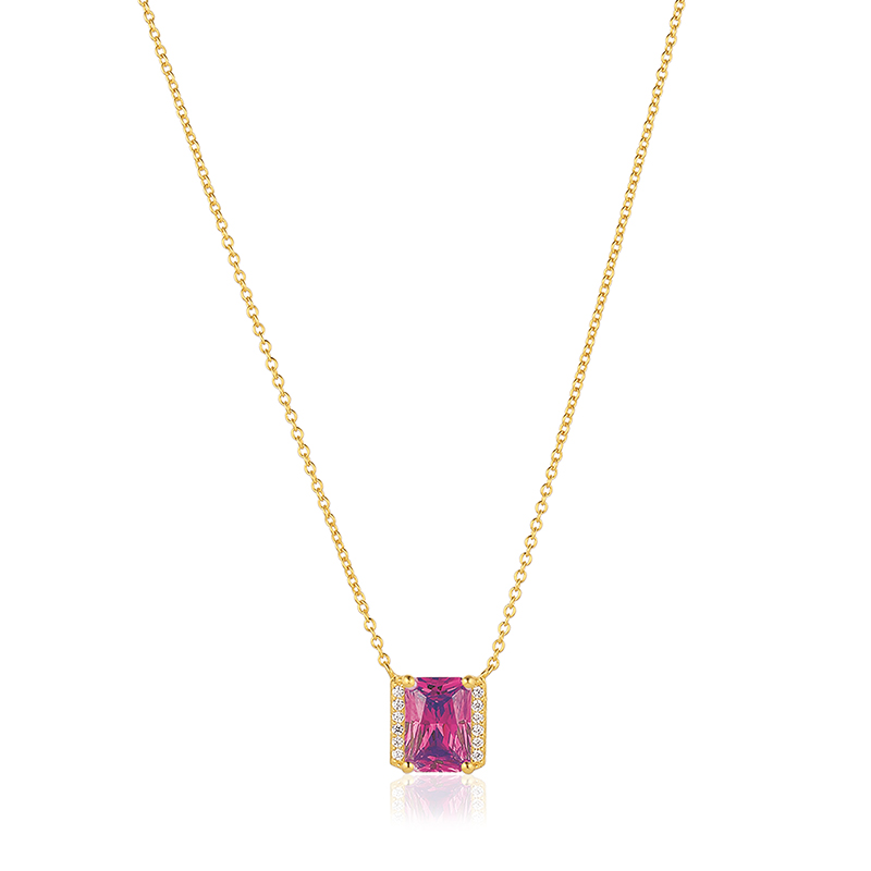 Sif Jakobs Roccanova X-Grande forgyldt halskæde med pink cubic zirkonia