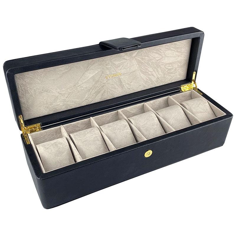 STORiES Urboks til 6 ure i sort kunstlæder er fra producenten mærke, som er anerkendte for at udvikle kvalitetsbevidste, holdbare og unikke smykker, der fås i lækre designs, og som derfor matcher perfekt ind i din garderobe og samtidig lever op til dine ønsker.