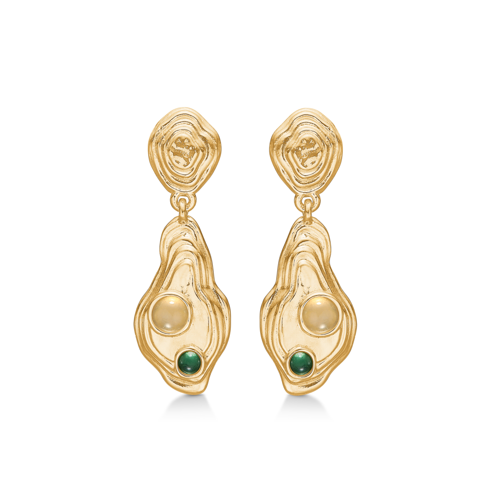 Studio Z Shell øreringe i guldbelagt sølv med grøn zirkonia er fra mærket mærke, som er anerkendte for at udvikle kvalitetsbevidste, holdbare og unikke smykker, der kommer i flotte designs, og som derfor passer godt ind i din garderobe og samtidig lever op til dine ønsker.